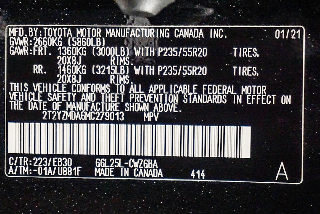- Front tires: 235/55VR20.0